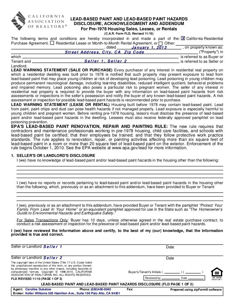The Forms Professionals Trust. The lead-based paint disclosure form is. Of lead-based paint andor lead-based paint hazards at Buyers expense.